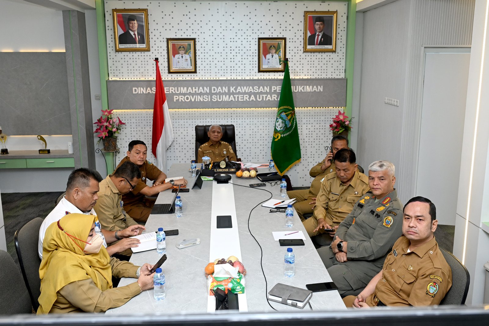 MEDAN — Wakil Gubernur (Wagub) Sumatera Utara (Sumut) Surya menghadiri rapat koordinasi (Rakor) bersama Menteri Dalam Negeri (Mendagri) Tito Karnavian untuk membahas kesiapan pemerintah pusat dan daerah menghadapi perayaan Natal 2025 dan Tahun Baru 2026 (Nataru). Wagub Surya mengikuti Rakor secara virtual dari Aula Kantor Dinas Perumahan dan Permukiman (Perkim) Sumut, Jalan AH Nasution, Medan, Senin (1/12/2025).