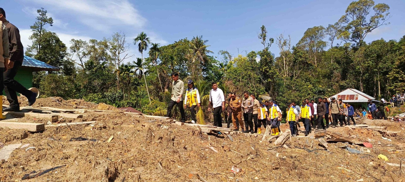 TAPANULI UTARA – Wakil Presiden (Wapres) Repulik Indonesia (RI) Gibran Rakabuming dan Gubernur Sumatera Utara (Sumut) Muhammad Bobby Afif Nasution meninjau lokasi pengungsian Desa Sibalanga, Kecamatan Adian Koting, Tapanuli Utara. Gibran dan Bobby Nasution ingin memastikan ketersediaan logistik, kesehatan serta pembangunan hunian tetap untuk korban bencana banjir dan longsor Sumut.