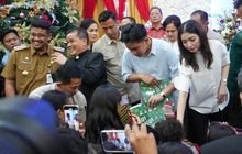 Setelah menyampaikan sambutan singkat, Gibran pun membagikan hadiah Natal. Pertama sekali yang mendapat hadiah Natal itu adalah anak-anak dan kemudian para remaja. Raut kegembiraan pun terpancar di wajah para anak dan remaja yang menerima hadiah itu.