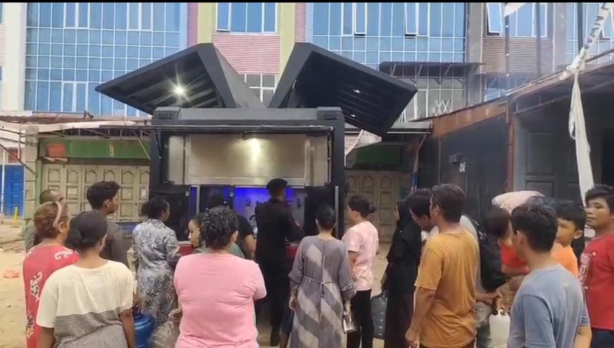 Mesin pengolah air itu langsung menjadi pusat perhatian. Sejak pagi, warga membawa jeriken, galon, hingga drum kecil. Mereka rela antre demi mendapatkan air bersih yang selama berhari-hari tidak tersedia. Bukan hanya untuk mandi atau mencuci, tetapi untuk kebutuhan paling mendasar: minum dan memasak.
